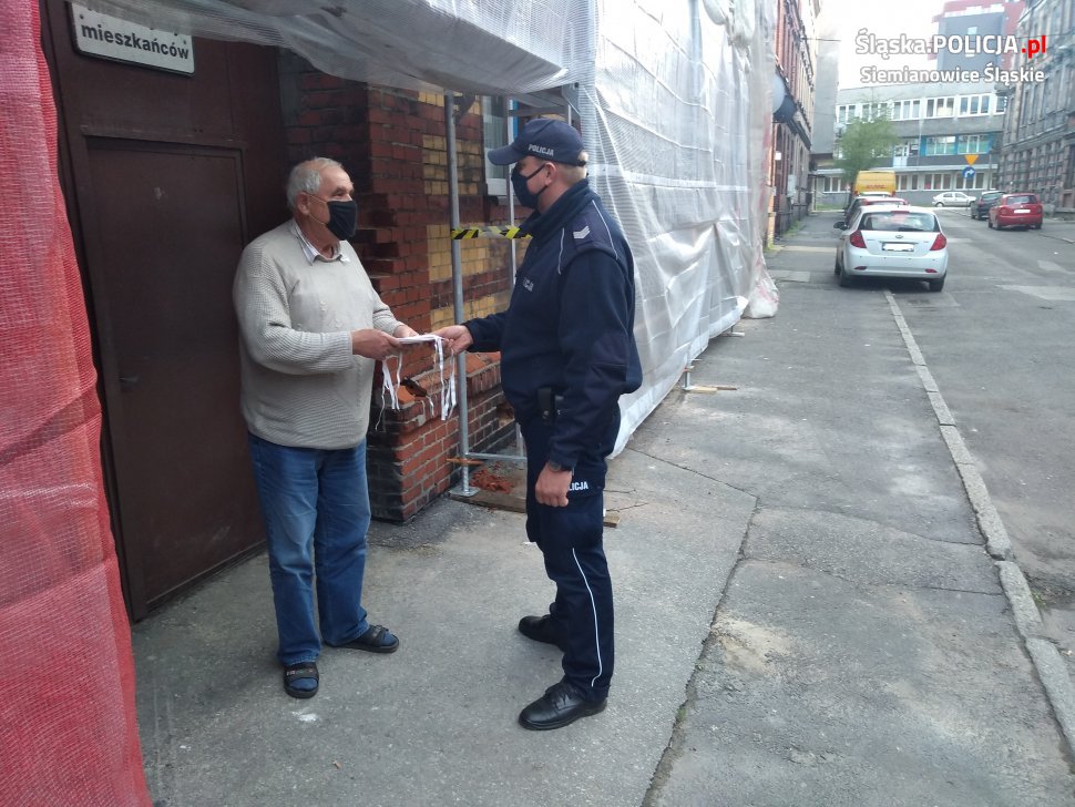 Kolejne maseczki ochronne trafiły do mieszkańców Siemianowic Śląskich. W związku z wprowadzonym w czwartek obowiązkiem zasłaniania ust i nosa, dzielnicowi w swoich podległych rejonach przeprowadzili profilaktyczną akcję. Podczas rozdawania maseczek, informowali o obowiązujących przepisach. Przypominali także o korzystaniu z aplikacji „Moja Komenda”. Dzięki niej, każdy może zwrócić się do swojego dzielnicowego o pomoc. Informacje takie będą przekazywane odpowiednim służbom.