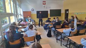 Podczas spotkania poruszono zagadnienia związane z przemocą rówieśniczą, hejtem, a głównie z konsekwencjami, jakie za sobą niosą te zjawiska, zarówno prawne, jak i emocjonalne. Omówili również jak sobie z nimi radzić, w roli osoby pokrzywdzonej i świadka. W przystępny sposób wyjaśnili, gdzie szukać pomocy w sytuacjach kryzysowych oraz jak wspierać rówieśników doświadczających przemocy. Psycholog i policjant podkreślali jak ważną cechą jest empatia, wzajemny szacunek oraz śmiałość reagowania na niepokojące zdarzenia. Spotkanie miało na celu budowanie świadomości wśród najmłodszych mieszkańców naszego miasta oraz promowanie właściwych postaw społecznych.