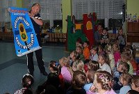 Ponad sto dzieci z Przedszkola nr 12 odwiedził dzisiaj nadkomisarz Adam Dragański z wydziału ruchu drogowego, który przeprowadził pouczającą prelekcję na temat bezpieczeństwa najmłodszych na drodze. W trakcie spotkania policjant rozdawał specjalnie przygotowane materiały wideo, których bohaterem jest znany dzieciom SpongeBob. Ta kreskówkowa postać w humorystyczny sposób wprowadza najmłodszych do świata zasad ruchu drogowego.
