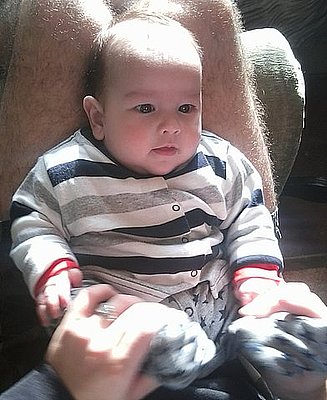 wzrost ok. 60-70 cm, oczy kol. ciemnozielonego (oliwkowe), widoczna wyrzynający się ząb - dolna jedynka, włosy bardzo krótkie – niemowlęce – kol. ciemnobrązowego wytarte z tyłu głowy.