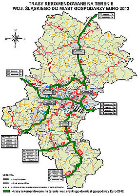 Komenda Wojewódzka Policji w Katowicach dążąc do usprawnienia przejazdu środkami transportu kołowego podczas EURO 2012 informuje o wyznaczeniu przez zarządcę dróg krajowych tras rekomendowanych przebiegających przez teren woj. śląskiego. ZAJRZYJ TUTAJ!